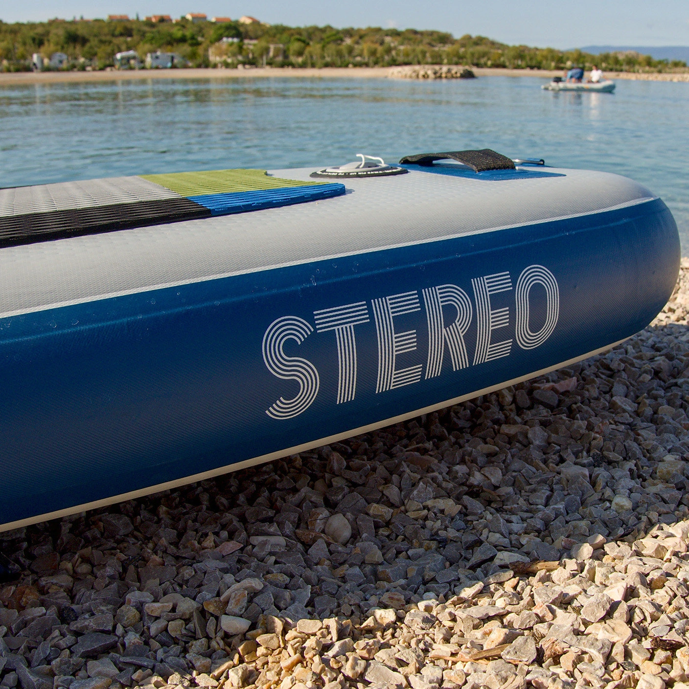 F2 to niemiecka marka z wieloletnim doświadczeniem w produkcji desek snowboardowych i windsurfingowych. Doświadczenie to sprawiło, że również deski SUP tej marki cechuje wysoka jakość wykonania. Stereo 11'5" to model przynależący do kategorii allround ale jej kształt i wymiary (350x83x15 cm) posiadają cechy deski touringowej. Ta swego rodzaju hybryda pozwala na znalezienie kompromisu między stabilnymi deskami allround, które są idealnym rozwiązaniem dla początkujących pływaków a deskami nadającymi się do dalszych wypraw. Całkowite obciążenie z jakim poradzi sobie paddleboard wynosi 130 kg ale wlicza się w to ewentualny bagaż czy np. psa. Waga pojedynczego użytkownika nie powinna przekraczać 110 kg. Pozwoli to na prawidłowe zanurzenie deski w wodzie. Stereo to model przeznaczony do pływania na wodach spokojnych oraz na małych falach.