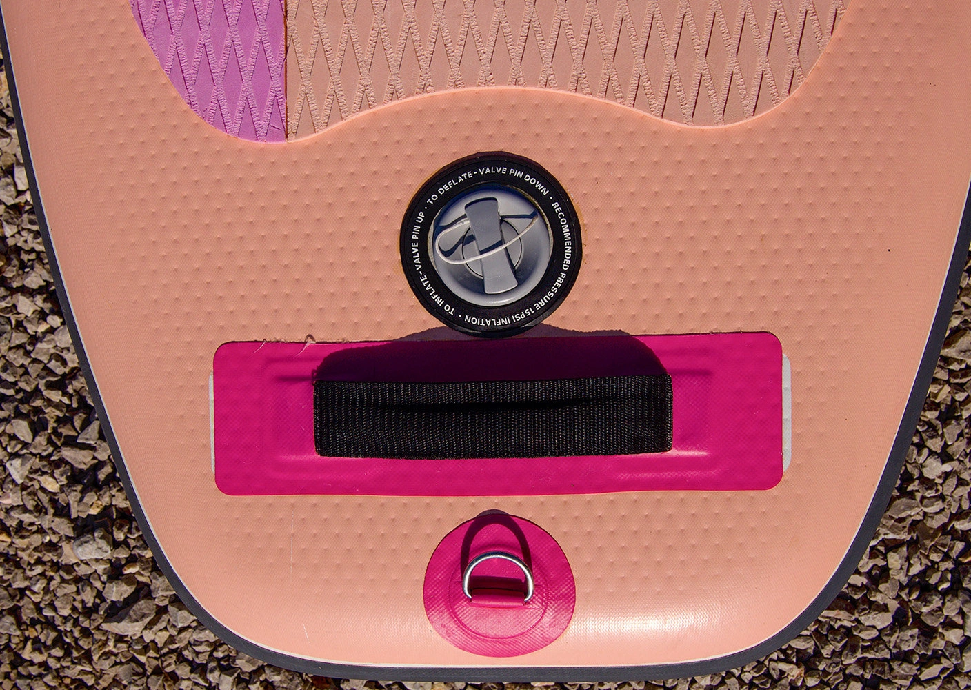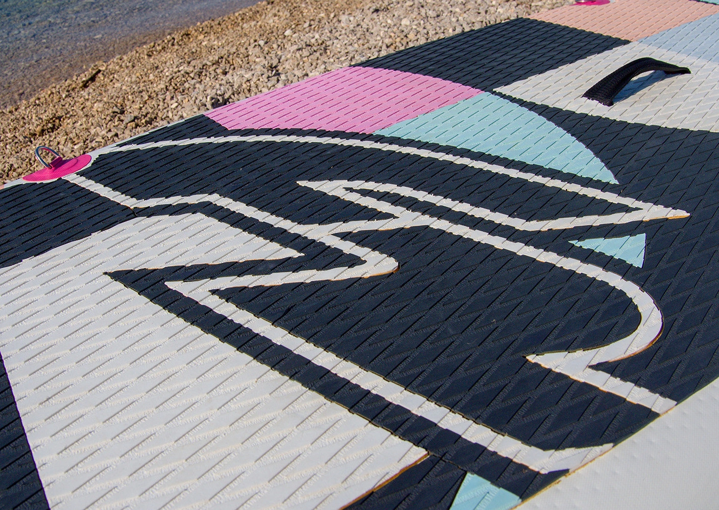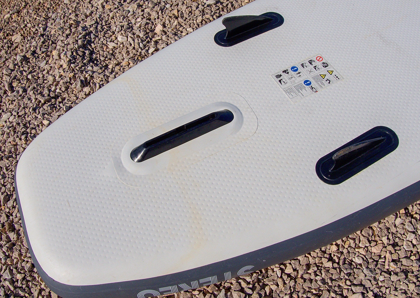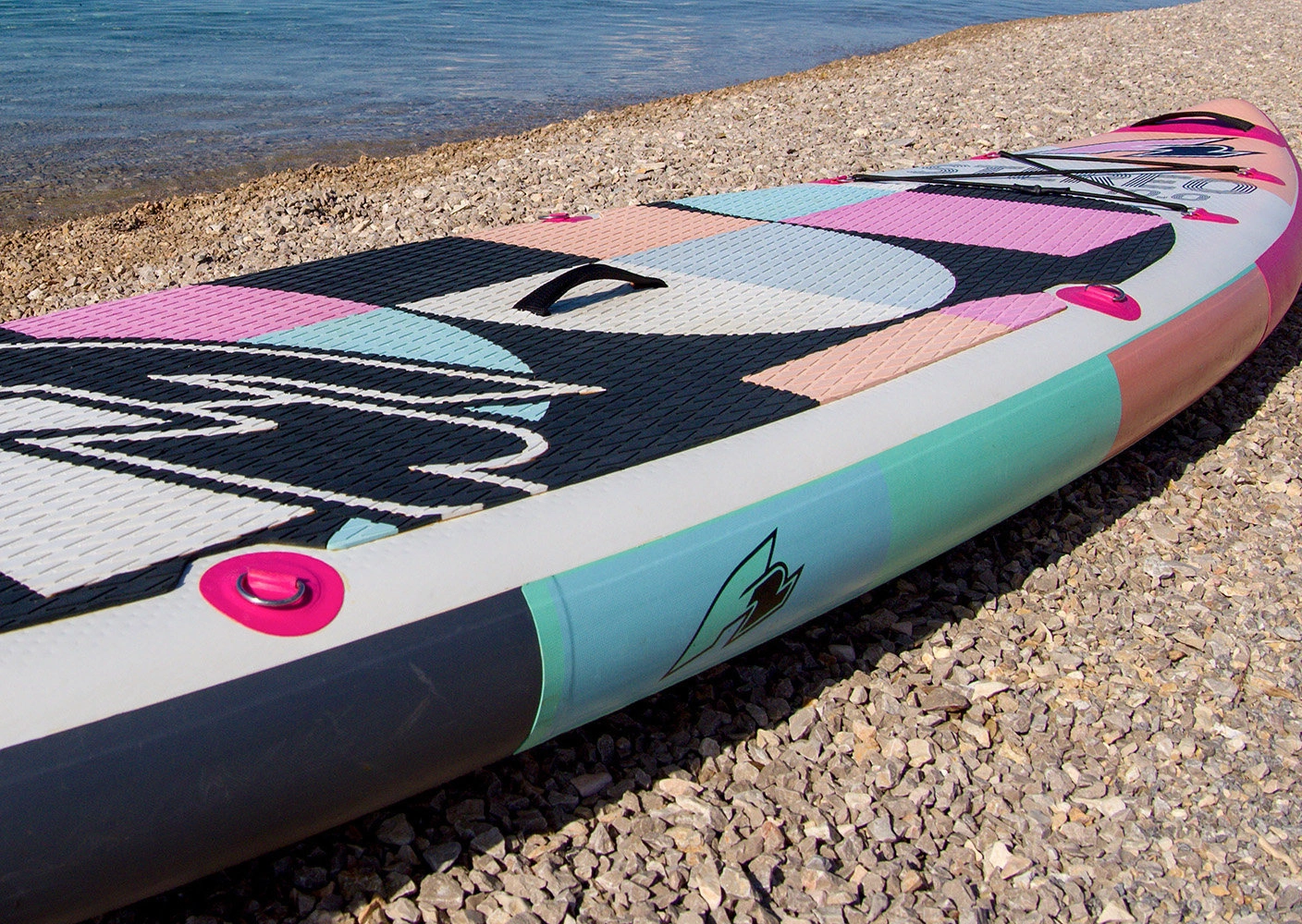 Paddleboard F2 Stereo posiada 3 uchwyty ułatwiające transport oraz odpowiednio rozstawione 4 mocowania typu D-ring umożliwiające zamocowanie siedziska kajakowego (nie jest on częścią tego zestawu). Na dziobie znajduje się elastyczna linka typu Bungy, która służy do przymocowania i ustabilizowania rzeczy osobistych jakie chcesz zabrać ze sobą na deskę. Rekomendujemy spakowanie swojego bagażu w wodoszczelną torbę, aby zapobiec zamoczeniu lub zgubieniu swoich rzeczy. Ta deska SUP wyposażona jest w układ trzech stateczników 2 + 1 - dwa małe, elastyczne, zamocowane na stałe finy oraz jeden duży, wyjmowany statecznik kompatybilny z systemem US-Box. Pokład deski jest pokryty warstwą antypoślizgowej pianki EVA, która jest bardzo komfortowa w dotyku, a dzięki specjalnie wyciętej strukturze diamond zapewnia dużą przyczepność i zapobiega ślizganiu się. W skład zestawu nie wchodzi leash czyli linka łącząca deskę z użytkownikiem. Należy ją dokupić oddzielnie.