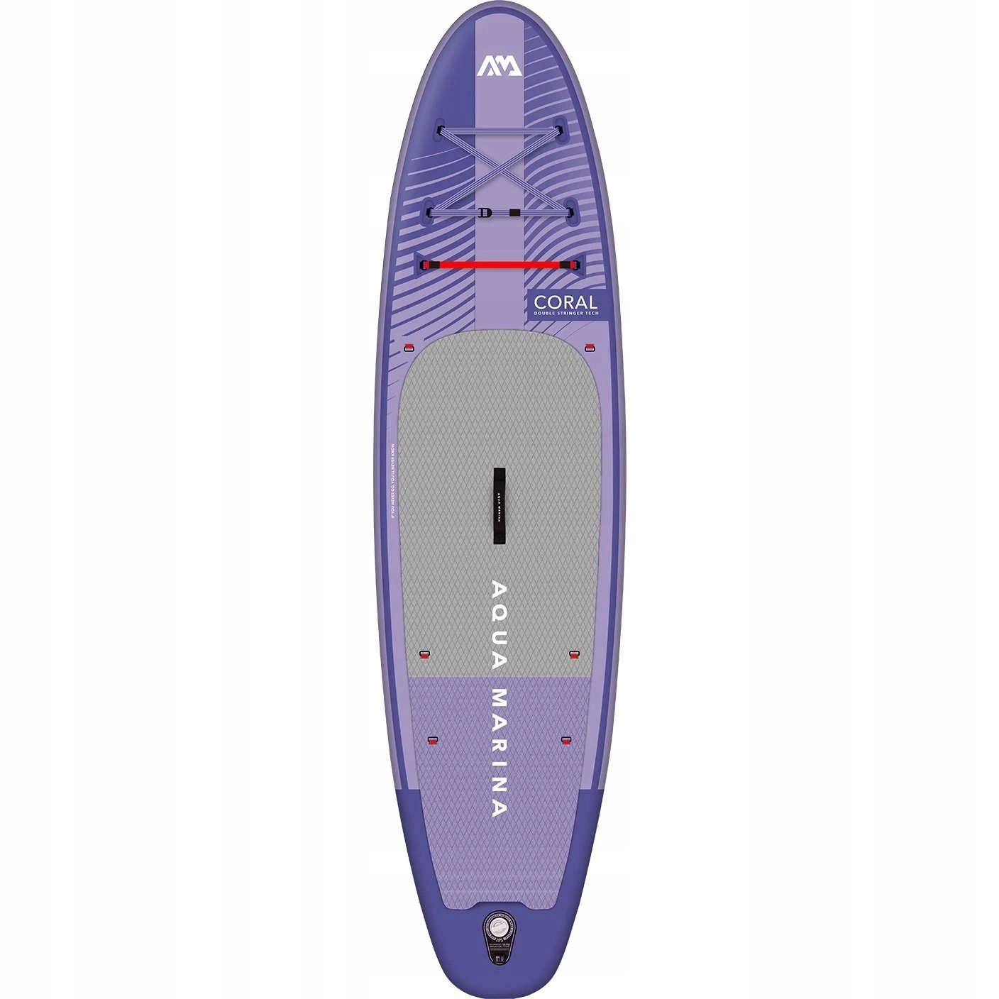 Aqua Marina to światowy lider wśród producentów desek SUP. Jednym z flagowych modeli z jego oferty jest paddleboard Coral, który występuje w dwóch wariantach kolorystycznych. Z uwagi na wymiary oraz design, głównie skierowany jest do kobiet. Waga pojedynczej osoby nie powinna przekraczać 80 kg mimo, że całkowity udźwig deski wg producenta wynosi 105 kg. Ten margines pozwoli na wspólne pływanie z naszym dzieckiem, zwierzakiem lub zabranie bagażu w dalszą podróż. Deska zaliczana jest do kategorii allround. Oznacza to, że możemy na niej pływać na wszelkiego rodzaju wodach, od jeziora po ocean. Jedynym ograniczeniem mogą być wysokie fale. To kompletny zestaw, który pozwoli na bezzwłoczne rozpoczęcie pływania.
