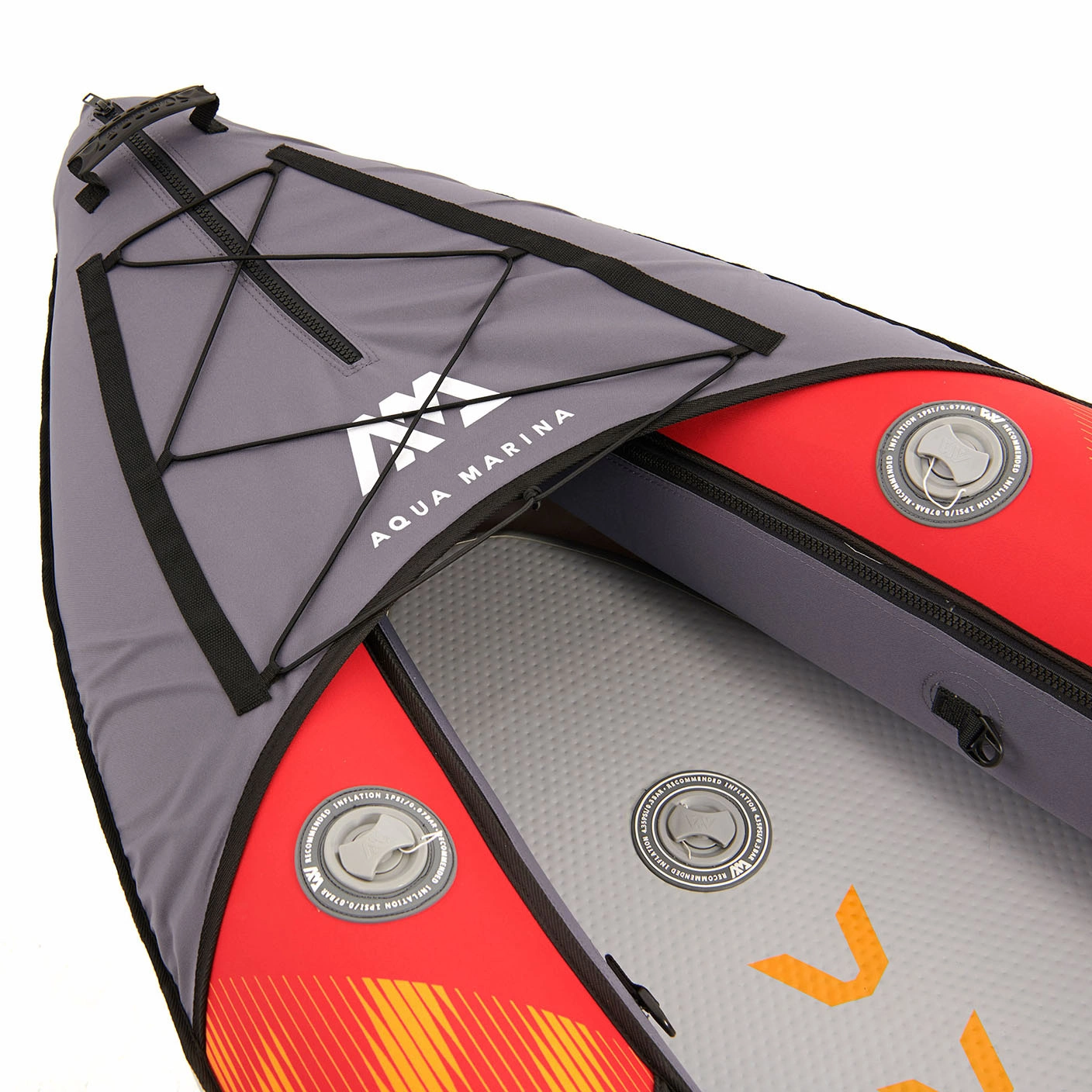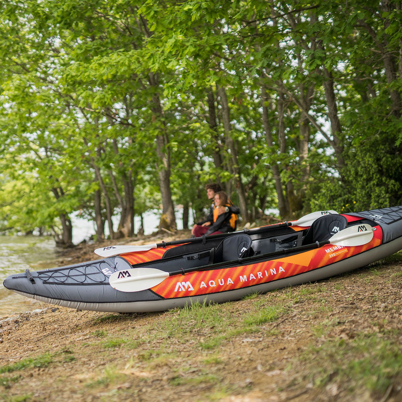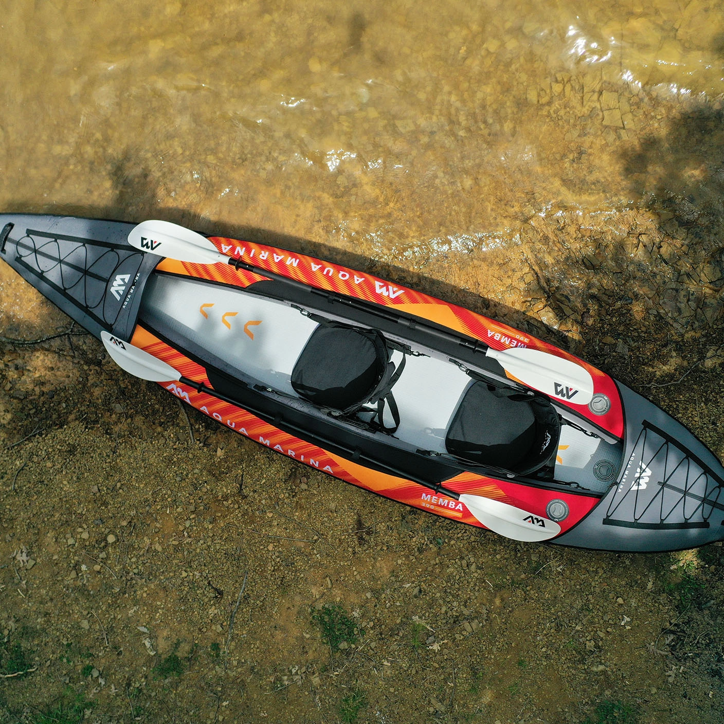 Kajaki hybrydowe łączą ze sobą technologię drop-stitch nadającą kajakowi sztywność, wytrzymałość i prędkość, oraz niskociśnieniowe komory, które sprawiają, że kajak zachowa odpowiednią stabilność. Są to bardzo uniwersalne modele, które nadają się zarówno do rekreacyjnego wiosłowania jak i do dłuższych, bardziej wymagających dystansów. W modelu Memba podłogę wykonano w technologii Drop Stitch DWF o grubości 7 cm a burty to niskociśnieniowe, osobno pompowane, komory, które wraz z kadłubem poszyto poliestrowym materiałem odpornym na działanie promieni UV oraz nieprzepuszczającym wody. Kajak posiada płaski Rocker oraz długą linię wodną co pozwala na szybkie i łatwiejsze pokonywanie dłuższych dystansów. Dzięki dwóm statecznikom (finom) oraz kształcie litery V Memba zachowuje odpowiednią manewrowość i utrzymanie kierunku ślizgu. Maksymalny udźwig kajaka wynosi aż 180 kg co pozwoli na zabranie większej ilości bagażu, który przypniesz dzięki linkom bungee znajdującym się zarówno na dziobie jak i na rufie.
