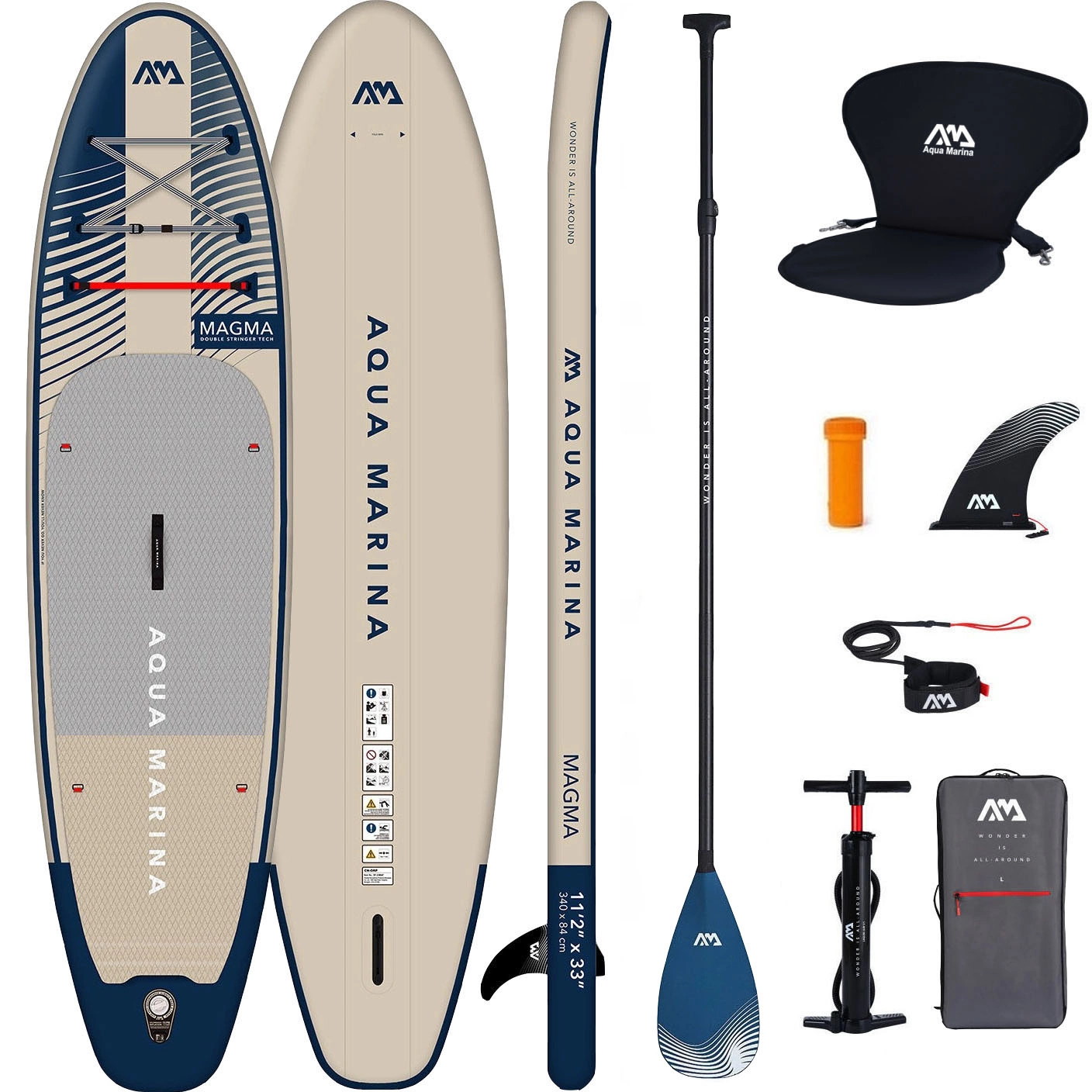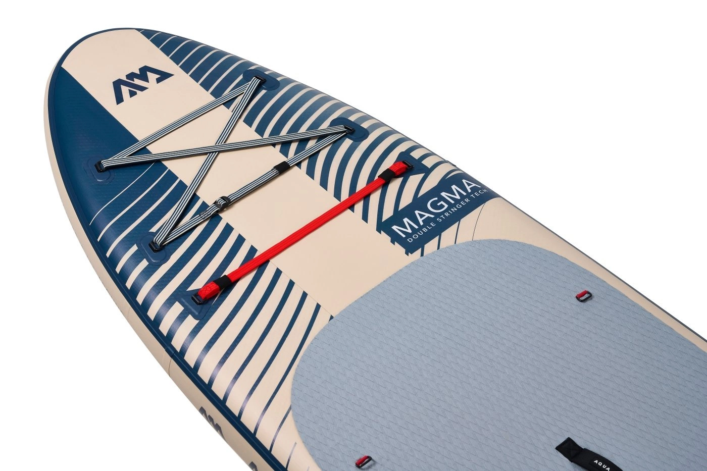 Tegoroczny model Magma należy do linii Advanced i cechuje się kilkoma ulepszeniami względem standardowych modeli. Jest sztywniejszy dzięki zastosowaniu technologii Double Stringer oraz pokryty grubszą i bardziej przyczepną pianką EVA w kształcie diamentów. Na rufie znajduje się kick pad ułatwiający wykonywanie skrętów i pływanie na falach a na dziobie podwójna linka bungy pozwalająca na przypięcie bagażu. Akcesoria (w tym karbonowe wiosło) będące częścią zestawu również są wyższej jakości niż standardowy sprzęt Aqua Marina. Paddleboard posiada mocowania typu d-ring, które pozwalają na przymocowanie siedziska kajakowego i pływanie na siedząco.