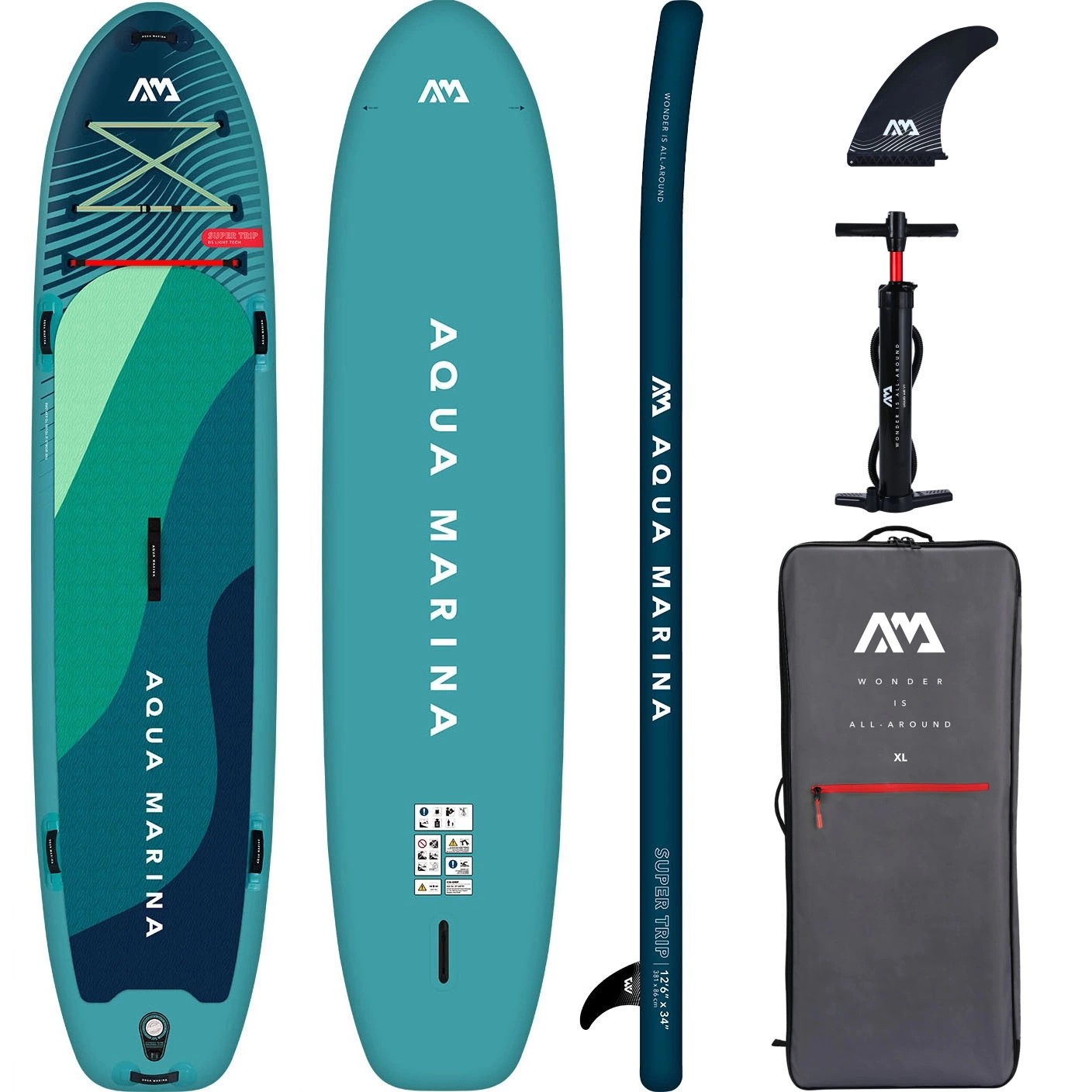 Deska SUP AQUAMARINA Super Trip 12'6 to idealna opcja dla rodzin oraz osób szukających stabilnego i wszechstronnego paddleboardu. Dzięki wyjątkowej stabilności, sprawdzi się doskonale w pływaniu w tandemie. Deska została zaprojektowana z myślą o komforcie użytkowników, oferując przeprojektowany system mocowania ładunku i nowoczesny design.