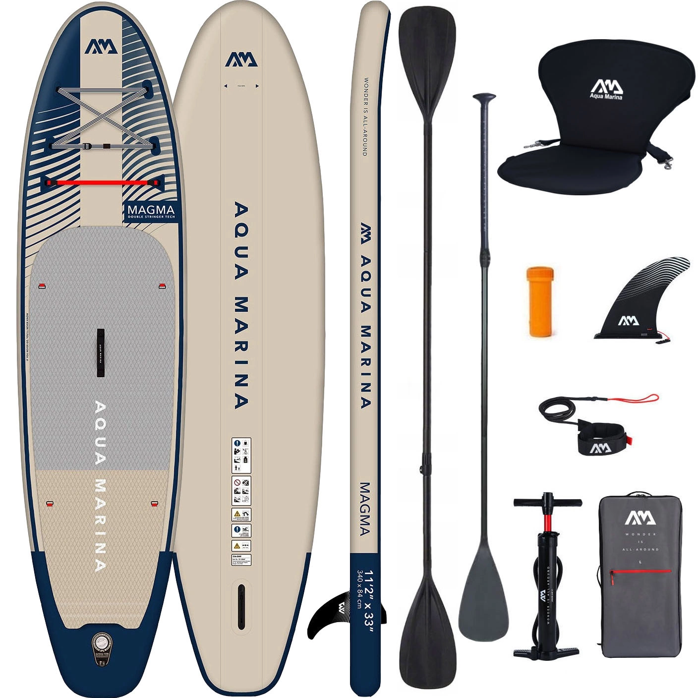 Tegoroczny model Magma należy do linii Advanced i cechuje się kilkoma ulepszeniami względem standardowych modeli. Jest sztywniejszy dzięki zastosowaniu technologii Double Stringer oraz pokryty grubszą i bardziej przyczepną pianką EVA w kształcie diamentów. Na rufie znajduje się kick pad ułatwiający wykonywanie skrętów i pływanie na falach a na dziobie podwójna linka bungy pozwalająca na przypięcie bagażu. Akcesoria będące częścią zestawu również są wyższej jakości niż standardowy sprzęt Aqua Marina. Paddleboard posiada mocowania typu d-ring, które pozwalają na przymocowanie siedziska kajakowego i pływanie na siedząco.