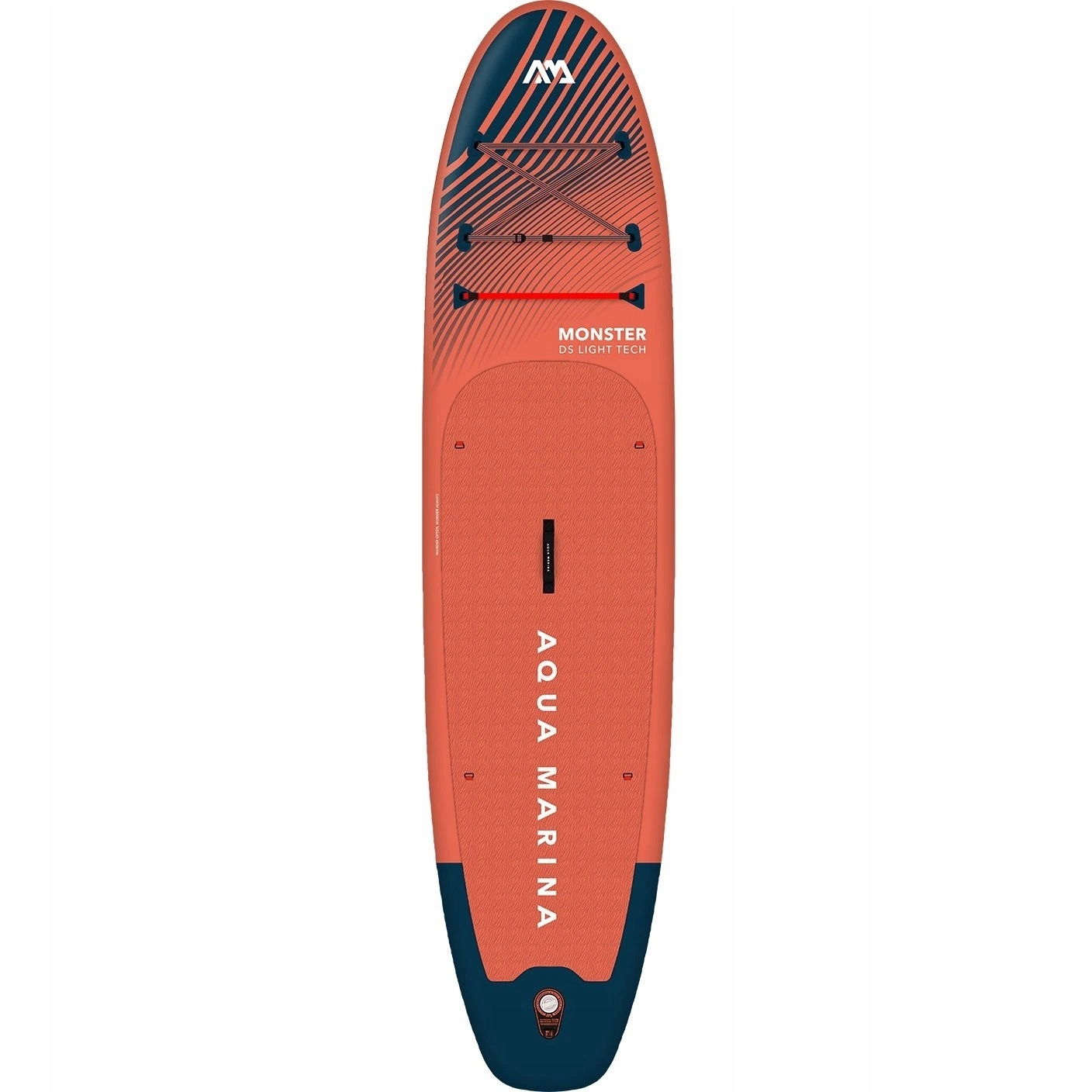 Model Monster z tegorocznej kolekcji wykonany został w technologii Drop Stitch Light, która zapewnia odpowiednią sztywność deski. Posiada ściętą rufę co znacznie poprawiło stabilność względem wersji zeszłorocznej. Pokład pokryty jest wysokiej jakości pianką EVA, która jest wygodna dla stóp oraz znacznie zwiększa przyczepność. Po zakończeniu pływania wszystkie elementy spakujemy do solidnego plecaka. Paddleboard posiada mocowania typu d-ring, które pozwalają na przymocowanie siedziska kajakowego i pływanie na siedząco.