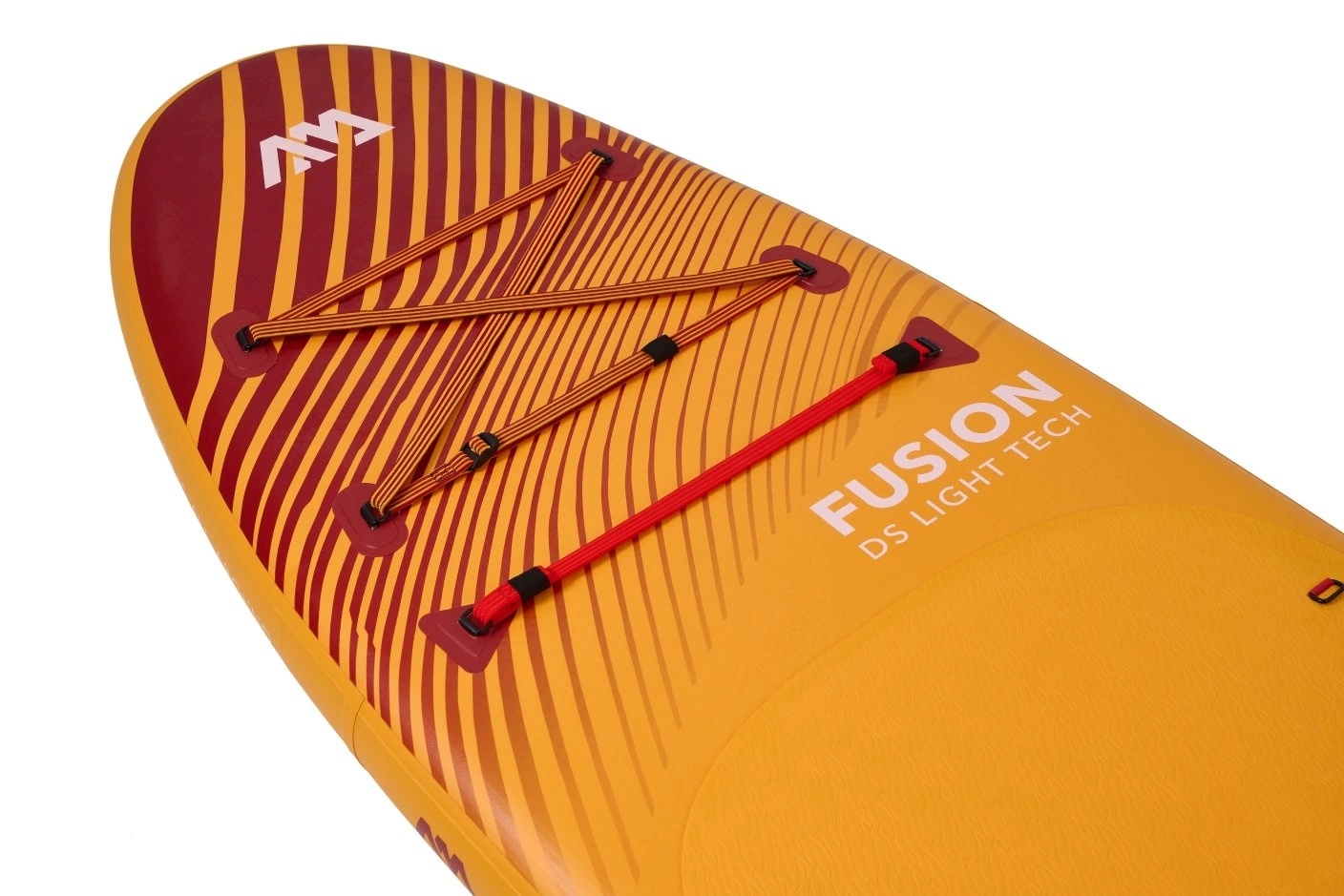 Model Fusion z tegorocznej kolekcji wykonany został w technologii Drop Stitch Light, która zapewnia odpowiednią sztywność deski. Posiada ściętą rufę co znacznie poprawiło stabilność względem wersji zeszłorocznej. Pokład pokryty jest wysokiej jakości pianką EVA, która jest wygodna dla stóp oraz znacznie zwiększa przyczepność. Po zakończeniu pływania wszystkie elementy spakujemy do solidnego plecaka. Paddleboard posiada mocowania typu d-ring, które pozwalają na przymocowanie siedziska kajakowego i pływanie na siedząco.