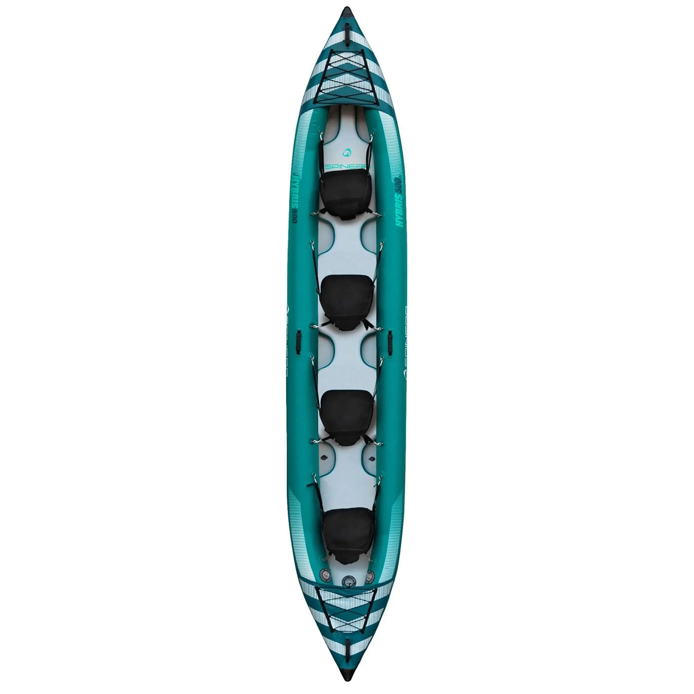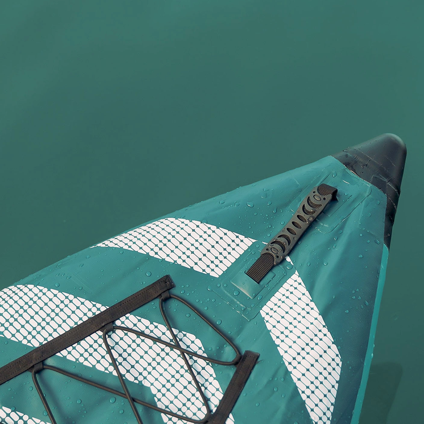 Model Hybris zawiera w zestawie torbę transportową do której spakujesz cały sprzęt. Nie ma wioseł oraz pompki, ale te znajdziesz w naszej szerokiej ofercie. O odpowiednią wygodę i pozycję zadbają cztery składane, wyjmowane siedziska z regulacją. Kajak posiada liczne uchwyty transportowe, zawory ułatwiające spuszczenie wody z kadłuba oraz zabezpieczenia zmniejszające wlewanie się wody.