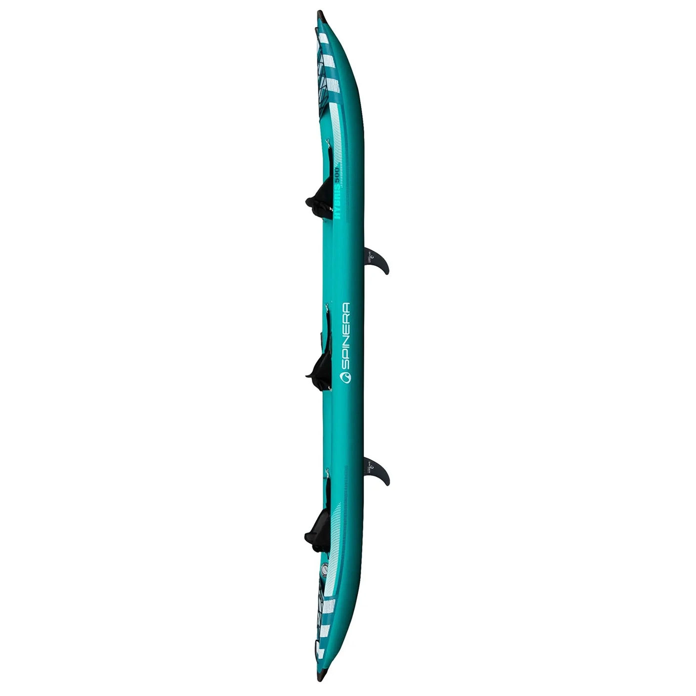 Spinera to austriacki producent sprzętu wodnego, który w swojej ofercie posiada między innymi kajaki hybrydowe. Swoją nazwę wzięły od wykorzystania dwóch technologii pompowanych komór. Podłoga została wykonana w sztywnej, wysokociśnieniowej technologii drop-stitch, która zapewnia odpowiednią wytrzymałość oraz prędkość, natomiast niskociśnieniowe burty zwiększają stabilność. Dzięki temu kajaki hybrydowe znajdą szerokie zastosowanie. Sprawdzą się zarówno w formie rekreacyjnego pływania po jeziorze, jak i podczas większych wyzwań rzecznych. Dzięki dwóm statecznikom (finom) Hybris zachowuje odpowiednią manewrowość i utrzymanie kierunku ślizgu. Maksymalny udźwig kajaka wynosi aż 340 kg co pozwoli na zabranie większej ilości bagażu, który przypniecie dzięki lince bungee znajdującej się zarówno na rufie jak i na dziobie.