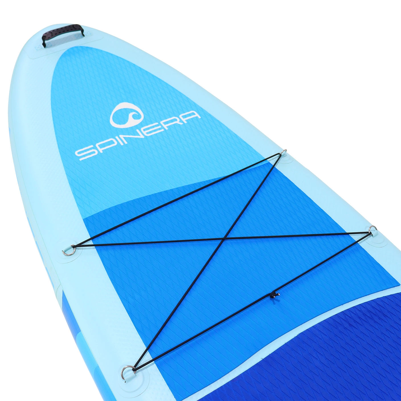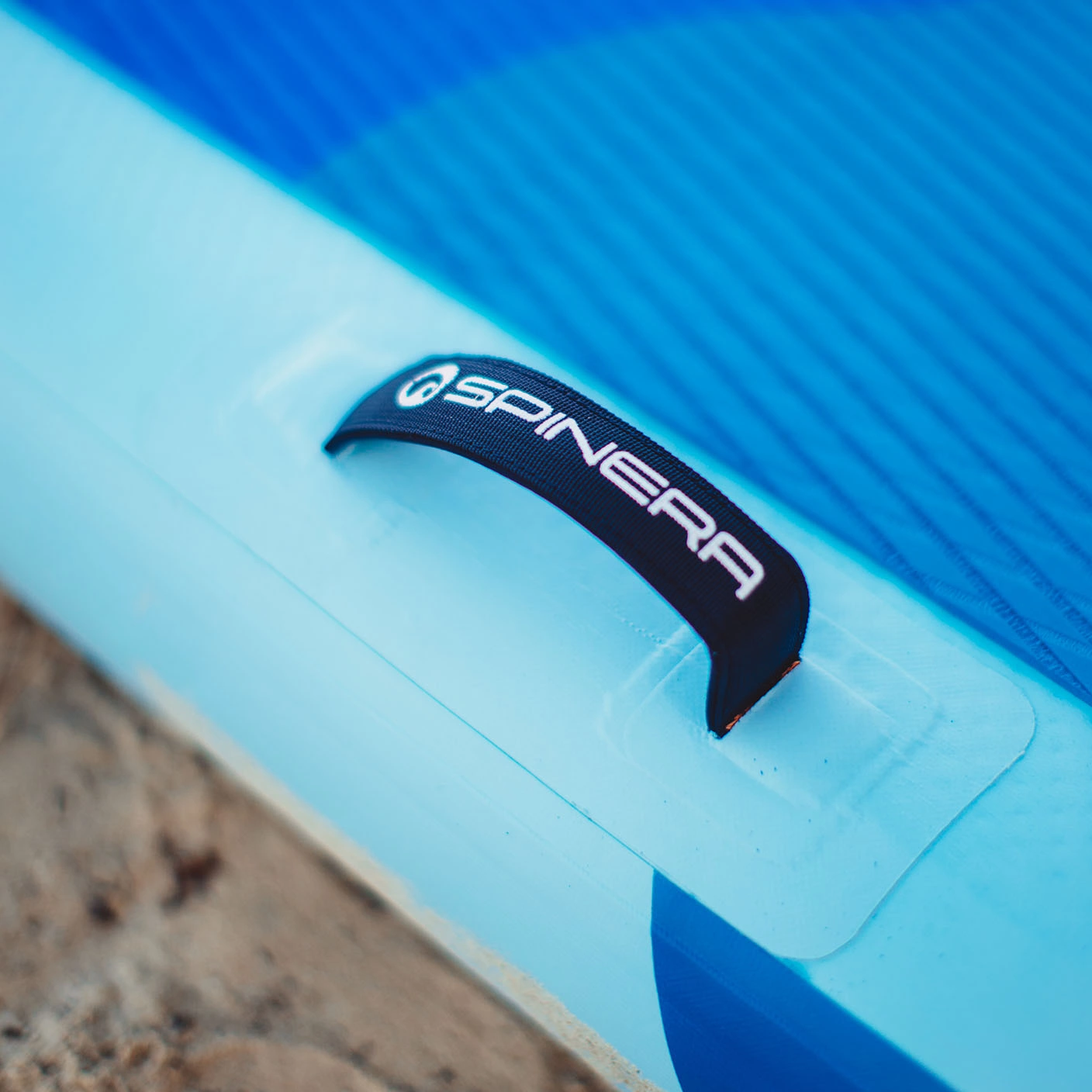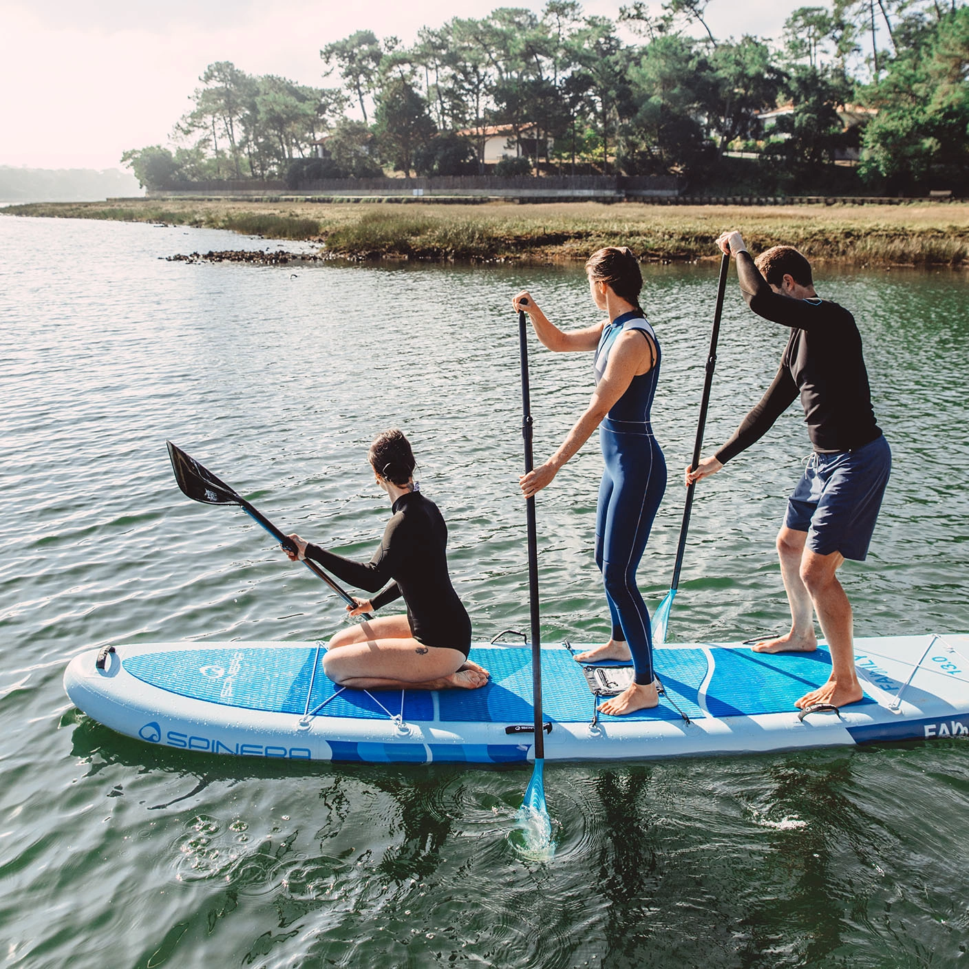 Model Spinera SUP Family 13'0" posiada podwójny system linek bungee zarówno na dziobie, jak i rufie, co umożliwia łatwe przechowywanie sprzętu. Kolejnym atutem jest zestaw zaczepów do siedzisk kajakowych – umożliwiają one zamocowanie dwóch siedzisk, dzięki czemu można wiosłować na siedząco z inną osobą.